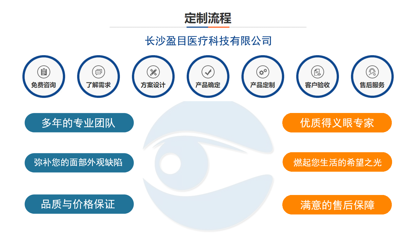 独创的义眼工艺结构,根据仿生物学原理,采用进口医用植入材料: 高分子材料、无毒素性能稳定、坚固耐用)、聚甲基丙乙烯-乙醋HEMA材料(软性亲水性材料),结合独特的义眼个性化佩戴技术,按佩戴者健眼的形态、角膜、虹膜、及瞳孔的大小、色泽、血管纹理和脂肪分布,设计制作。拥有超薄、质轻、光滑、亲水透氧、佩戴舒适和高逼真的特点。为保证佩戴效果,提高佩戴寿命,我中心为佩戴者终身免费提供义眼的上光和保养等人性化技术服务。爱美之心,人皆有之。愿我们精湛的技术使您倍增信心。...